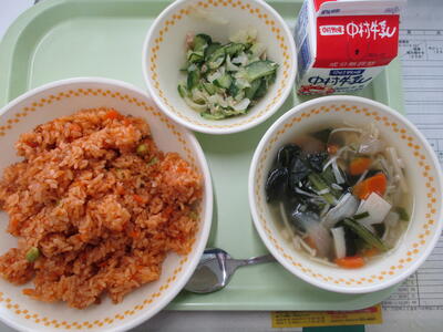インディアンライスとは、とり肉やたまねぎ、にんじん、グリンピースなどの野菜がたくさん入ったカレー風味の混ぜご飯です。5月になって、昼間の気温もずいぶんと暖かくなりました。これから、夏にむけて、どんどん気温も上がり、暑い日が多くなってきます。今のうちから、夏の暑さにたえられる強い体を作るためにも、給食をしっかり食べることが大切です。インディアンライスのカレーの風味で、食欲が出てくる一品です。