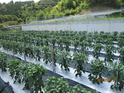畑にお邪魔すると、今日の給食で使うピーマンをちょうど収穫中でした。収穫したてのピーマンをいただけるなんて、とっても贅沢なことですよね。