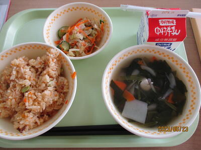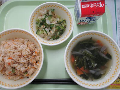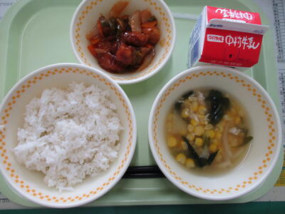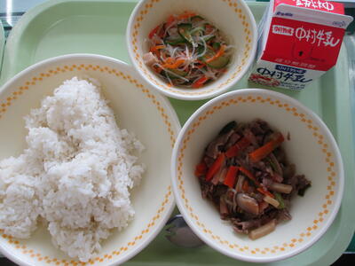 今日から、歯と口の健康週間です。歯と口の健康を守ることは食事をする上で、とても大切なことです。そして、よくかんで食べることは体によい働きがあります。給食では、かみかみ週間として、かみごたえのある食べ物を使った献立にしています。今日のかみごたえのある食材は、ごぼうです。よくかんでたべることを意識して、食べましょう。そして、食後のはみがきもしっかりとして、歯と口の健康を守ってほしいです。