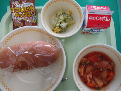 今日のかみごたえのある食材は、かみかみさつまいもチップスです。宮崎県産のさつまいもを使って作られているものです。よくかんで食べてほしいと思います。