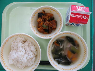 夏のマーボーライスにはなす、ピーマンの夏野菜を入れて作りました。にんにく、しょうががきいていてとてもおいしかったです。なすが給食室の先生方が小さく切ってくださいました。そのおかげで、苦手でも食べることができる人が多かったです。ありがとうございます。