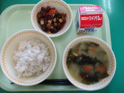 (デザートはお誕生日給食の人にだけ付く特別なものです。)