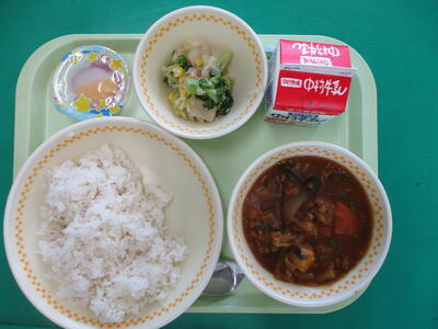 今日はなすやかぼちゃ、ピーマンといった夏野菜をたっぷりと使った夏野菜カレーです。そして、今日は1学期最後の給食です。夏の暑い中、汗びっしょりになりながら給食を作ってくださった給食室の先生方に感謝しながらいただきましょう。明日から夏休みが始まります。早寝・早起き・朝ごはんのリズムを大切に、楽しい夏休みを過ごしてくださいね。2学期の給食も楽しみにしていてください。