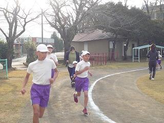 寒い中、全校児童で晴れた日は運動場で、雨の日は体育館で持久走をよく頑張りました。