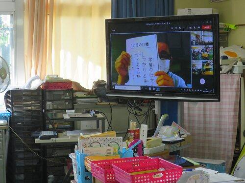 今日は10月の全校朝会をテレビ会議システムを使って行いました。