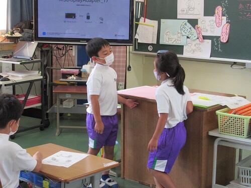 「大事な言葉を上手にまとめている」「写真があって分かりやすい」「文字の強調がよい」といった友だちの発表のよい点に気づいていました。