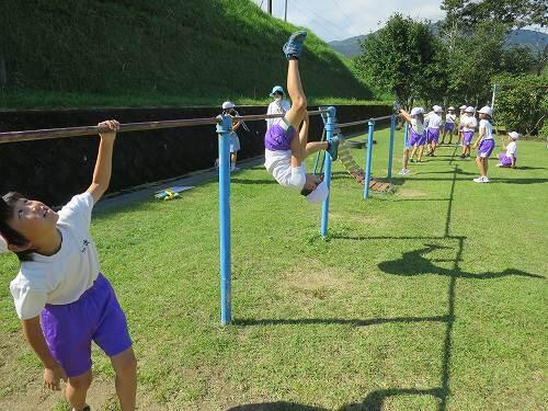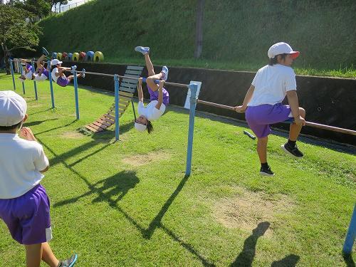 3年生が鉄棒をしていました。
