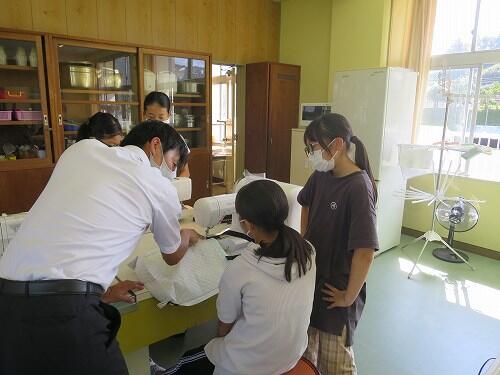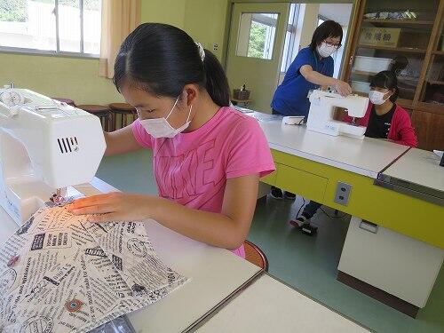 6年生は家庭科でミシンを使った作品作りをしていました。