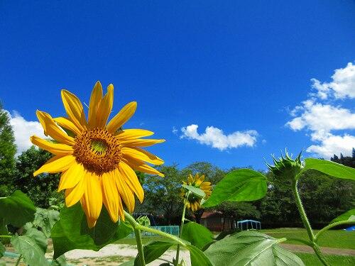 子どもたちが育てているヒマワリも、一段と黄色の花びらが鮮やかに見えます。