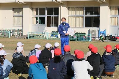 校長先生からは、「あいさつ」年末や新年のあいさつをしっかりとすること。「ありがとう」お年玉などをいただいら、きちんとお礼をいうこと。「お手伝い」家族の一員として大掃除などの手伝いをしっかりすること。そして、一つしかない命を大切にしてすごすことの話がありました。