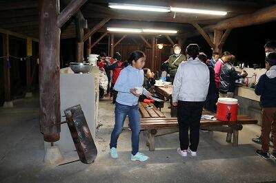 班のみんなとも、仲良くなり楽しそうです。午後は日之影キャンプ場に移動します。