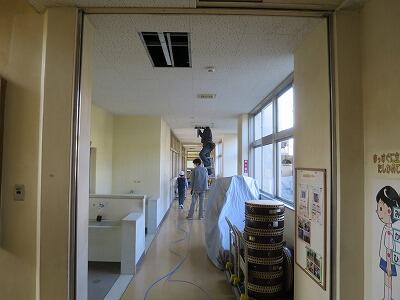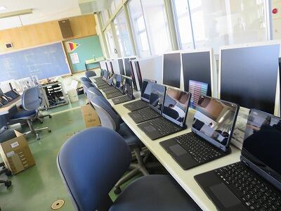 宮水小(日之影町)では、児童1人1台のタブレット導入をすすめています。今日は学校のパソコン室やLANの工事を行いました。