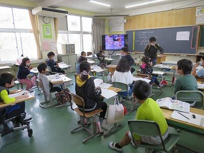2年生は、作文の学習をしていました。お話に書くことのポイントを学習した後、実際に書いてみました。書くのは楽しいようで、鉛筆がスラスラと動いていました。書いた後に友達と読み合いをして、文章のよいところをたくさん見つけていました。