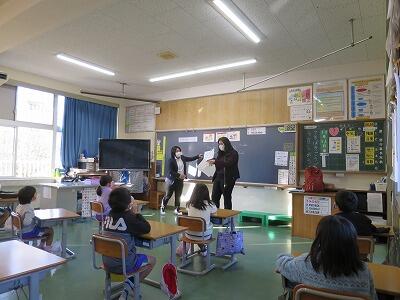 2年生は外国語に親しむ時間でした。クリスマスに関する言葉を楽しく練習していました。最後に雪だるま(Snow Man)をみんなで作りました。