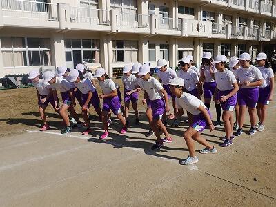 3・4年生は、運動場を走った後、外周を1周します。みんな一生懸命がんばっていました。