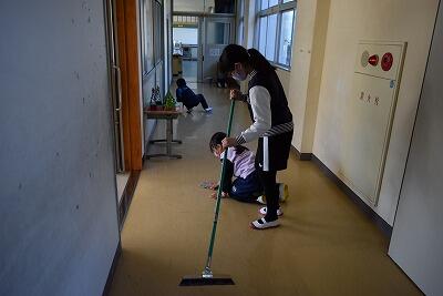 清掃の時間、子ども達は「とむすじあ」(とりかかり・むごん・すみずみ・じかんいっぱい・あとしまつ)を合い言葉に取り組んでいます。