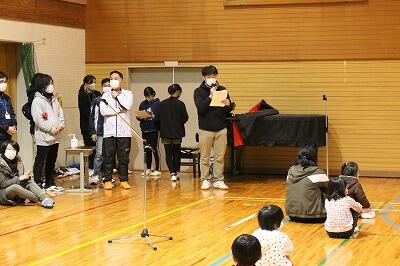 ブラックシアターです。ピアノの演奏に合わせて、歌を歌ってくださいました。