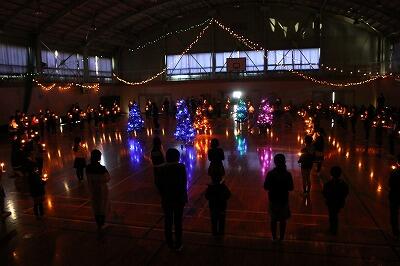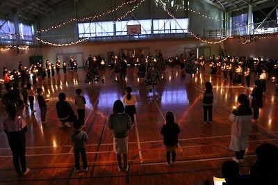 全員のろうそくに明かりが灯りました。火への感謝の言葉を6年生が言いました。シーンとなって全員が目の前のろうそくの明かりを見つめていました。
