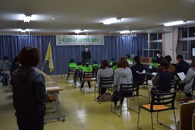 作文発表は1年生と5年生でした。1年生は運動会や音楽発表会でがんばったこと、そして、勉強でできるようになったこと、学校がとても楽しかったことを発表しました。5年生は、宿泊学習のカレー作りや丹助山登山を通して、自分ができることがあることに気づき行動することが大切であるということを発表しました。2人とも立派な発表でした。