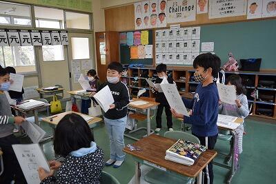 3年生の教室では通知表を渡していました。先生から「この通知表が君たち全てをあらわしたものではないけど、精いっぱい考えました。」「自分ががんばったところ、文章のところもしっかり読んでください。」という話がありました。