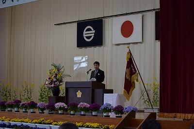 校長先生や来賓の皆さんのお話を聞いています。