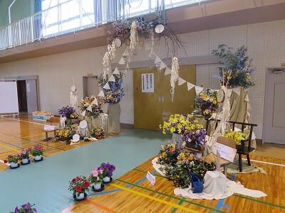 今回の体育館の入口の花の飾りは、「みやざき花いっぱいプロジェクト2020」の取組で、飾っていただきました。昨日までなかった花の飾りに子ども達もびっくりしたのではないでしょうか。とてもきれいな花の飾りに卒業生も大喜びでした。ありがとうございました。