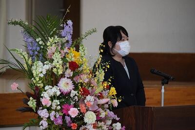 別れの言葉では、卒業生から在校生、保護者や先生方、これまでお世話になった全ての人たちへの感謝の言葉とこれからの決意が述べられました。卒業生が一生懸命歌う姿に涙が出ました。