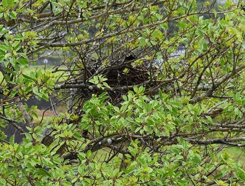 カラスの巣を見つけました。卵をあたためているのでしょうか。じっとこちらを見ていました。