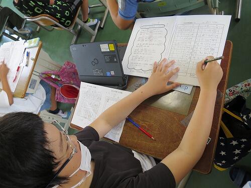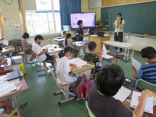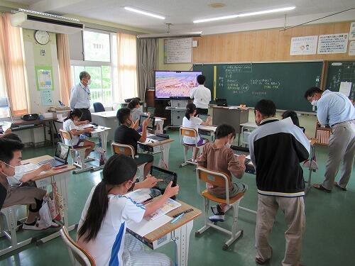 5年生は社会科の米の生産量の多い県の予想をタブレットに書き込んでいました。話合いが盛り上がりそうです。