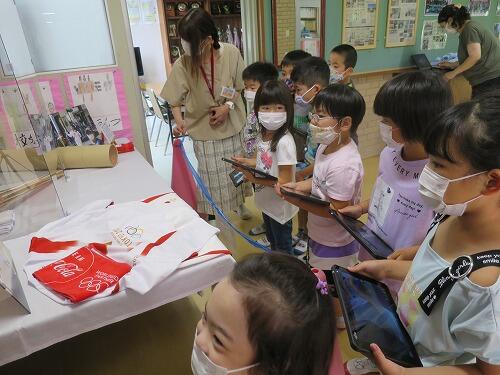 子どもたちは、ピカピカに輝くトーチとユニフォームを見て「かっこいい!」とタブレットで記録していました。ありがとうこざいます。