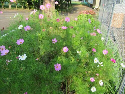 ところが、なぜかコスモスの花もきれいに咲いています。不思議ですね。
