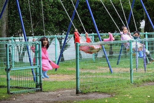 長靴、雨合羽、かさを用意し、準備はばっちりです。歩いているうちに雨がやんできましたが、水たまりに入ったり、木の下で葉っぱをゆらして雫が落ちてくるのを楽しんだりしました。アジサイやカタツムリなども見つけることができました。