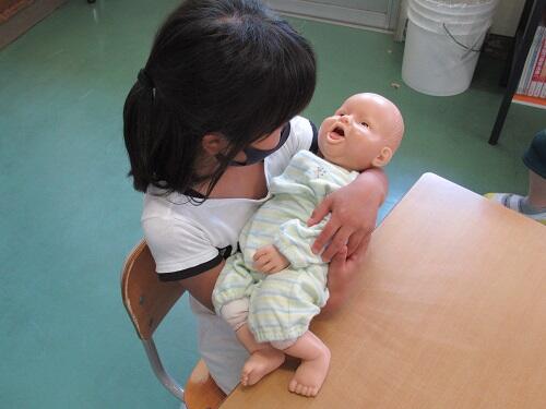 おなかの中で成長していく赤ちゃんの大きさと重さをぬいぐるみを抱っこして体感しました。