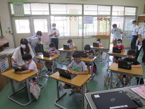 2年生はタブレットを使って、算数の計算問題に取り組んでいました。