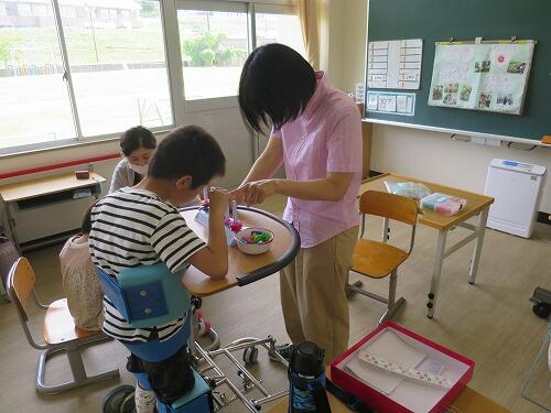 たんぽぽでは、自立活動の時間でした。指を使う練習をがんばってました。