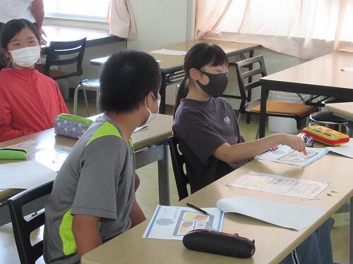 2年生は、外国語活動をしていました。テーマは、「potate」,「onion」などの野菜です。最後は、「フルーツバスケット」をしました。実際は、好きな野菜を英語で言って、その野菜が好きな人全員が移動するというものでした。このように外国語活動では、ゲーム等を通して楽しみながら英語に親しむようにしています。