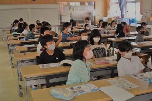 最後に、質問コーナーがありました。子どもたちの質問に対する回答で印象に残ったのが、「私たちが大切にしていることは、お客様の安全とお客様に寄り添ったサービスはもちろんのこと、『あいさつ』『笑顔』『姿勢』にも常に気を配っている」ということでした。仕事の内容や心掛けていることなどを聞いたり体験したりすることができ、貴重な学習(体験)をすることができました。