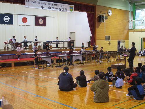 宮水小学校体育館に日之影中、宮水小、日之影小、高巣野小の4校の生徒・児童が集まって、音楽の発表をしました。昨年度は、学校毎のビデオ撮影でしたが、本年度は、他の学校の発表を見ることができました。宮水小学校の子どもたちの発表はもちろん素晴らしかったのですが、他の学校の子どもたちの発表も大変素晴らしく、その発表をその場で聴くことができて、子どもたちにとって心に残る音楽会になったのではないでしょうか。