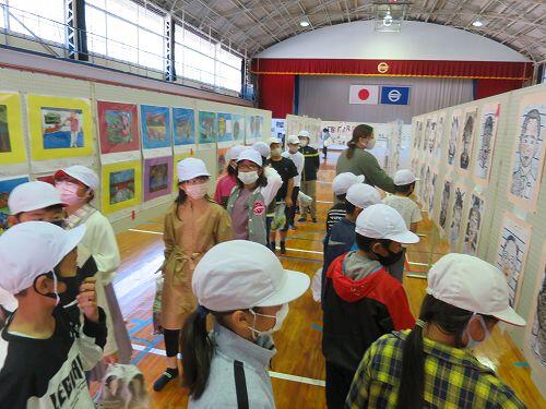 自分の作品を見つけて喜んだり、様々な人の作品のよさを感じたりしていました。