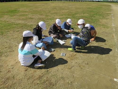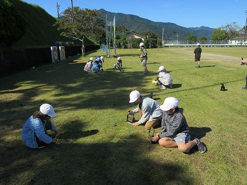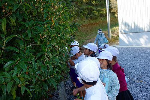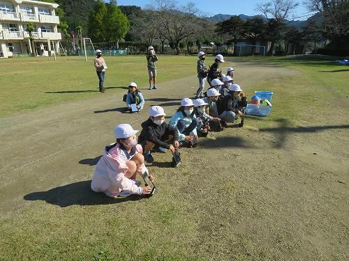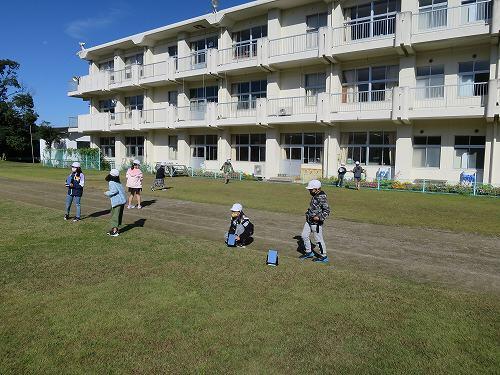 今日は1年生が生活科の学習で、秋を見つけに探検に出かけました。