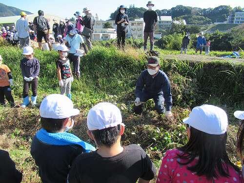 環境整備部の甲斐さんが芋のほり方を説明してくださいました。