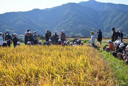 環境整備部長の小川さんが稲刈りの仕方について説明をしてくださいました。