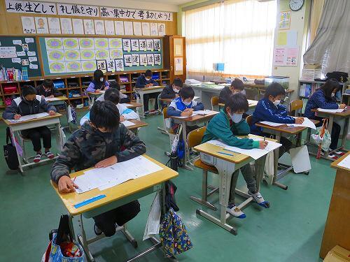 6年生の教室では、国語の漢字50問テストをしていました。見直しもバッチリのようです。2学期も残り少なくなってきました。他の学年でも2学期のまとめのテストをしていきます。2学期に学習したことをしっかり身につけて冬休みをむかえましょう。
