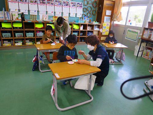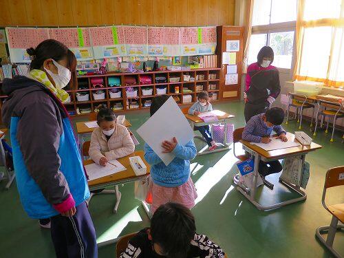 それを受けて、上学年が下学年にやさしく教えてあげました。