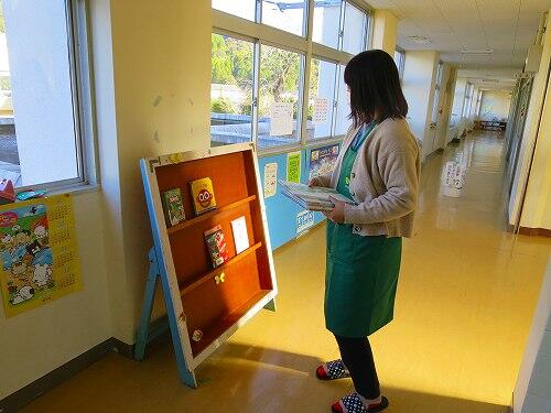 12月になり、図書活動推進員の戸髙先生が廊下の本立ての本を入れ替えていました。どれも、子どもたちが読みたくなるような本です。