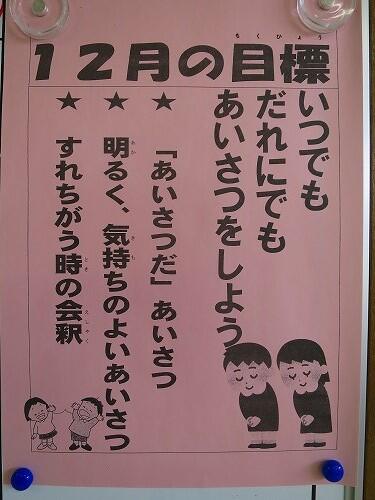 12月の月目標は「いつでも だれにでも あいさつをしよう」です。