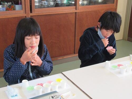 収穫したもち米で作ったみかん大福をみんなで食べました。