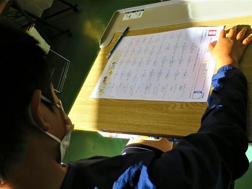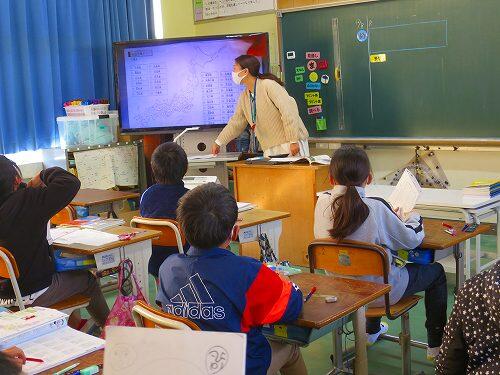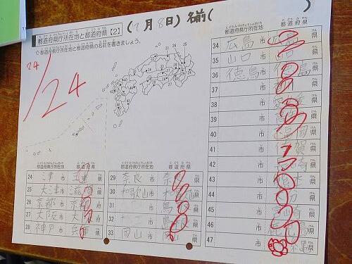 4年生が社会科の時間に日本地図の県名プリントに挑戦していました。