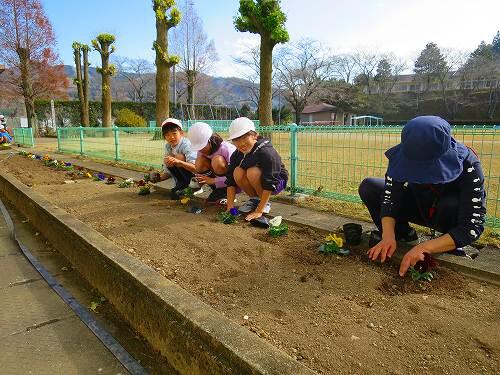 3校時、2年生が冬休みに備えてベランダから職員室前に鉢を移動させました。鉢は、パンジーにビオラ、チューリップなどです。