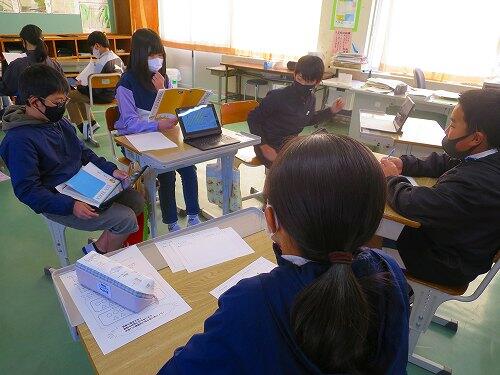 2年生が1月に予定している学習発表会の小道具作りをしてていました。
